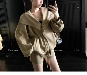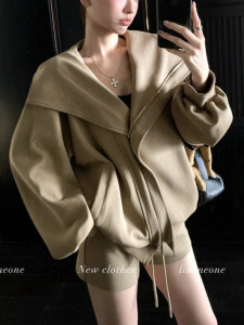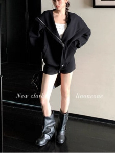 LINONEONE白女美学 韩系休闲宽松连帽卫衣开衫外套抽绳套装