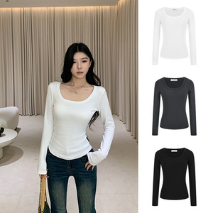 Moses Queen/魔西女王加绒保暖T恤方领打底衫长袖正肩显瘦上衣冬