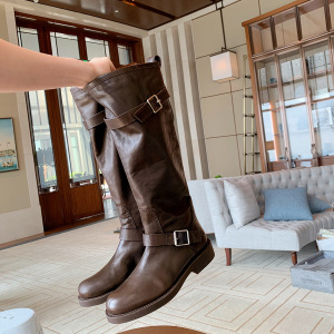 做货版~2025葡萄妈 腿精出街~ 牛皮尖圆头时髦皮带扣粗跟长靴女