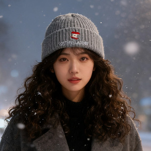 C5608刺绣三分之一苹果YOU针织帽YC 浅灰