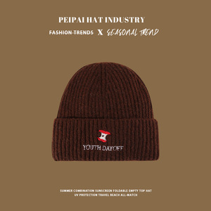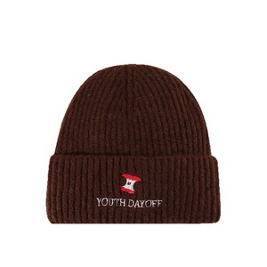 C5608刺绣三分之一苹果YOU针织帽YC 咖啡