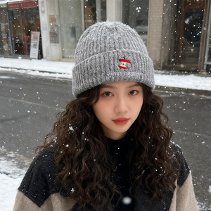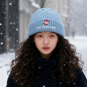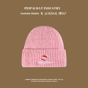 秋冬季新款韩版刺绣防寒针织帽女保暖百搭可爱毛线帽时尚护耳冷帽