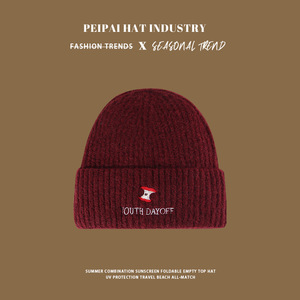 C5608刺绣三分之一苹果YOU针织帽YC 酒红