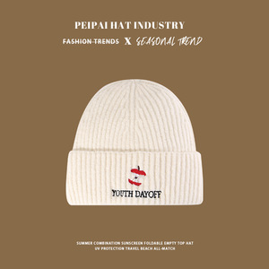 C5608刺绣三分之一苹果YOU针织帽YC 奶白