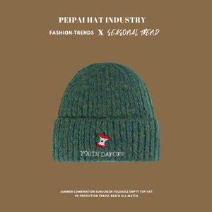 C5608刺绣三分之一苹果YOU针织帽YC 混绿色