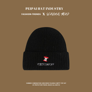 C5608刺绣三分之一苹果YOU针织帽YC 黑色