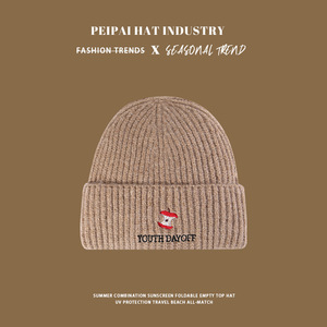 C5608刺绣三分之一苹果YOU针织帽YC 卡其