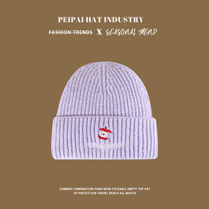 C5608刺绣三分之一苹果YOU针织帽YC 紫色