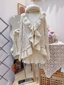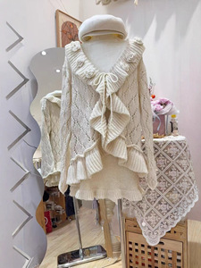 2025秋冬绝美法式温柔风气质荷叶边长袖毛衣针织衫木耳边系带毛衣