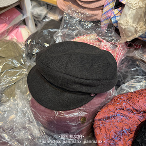 韩系ins新款文艺复古毛呢气质平顶军帽女秋季简约褶皱百搭画家帽