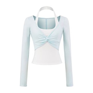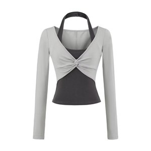 2025秋季新款撞色扭结假两件长袖T纯欲吊带修身上衣