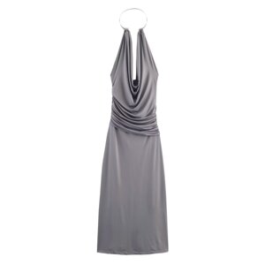 PB&ZA女装2025年秋季新款 气质名媛修身款珠宝领长连衣裙5063251