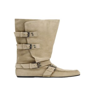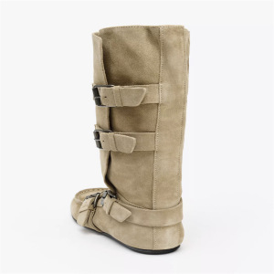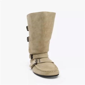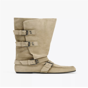 2025秋冬新款复古皮搭扣铆钉饰带时尚百搭西部靴中筒靴堆堆褶皱裤