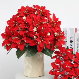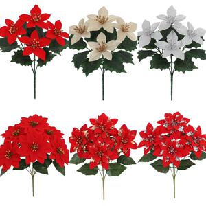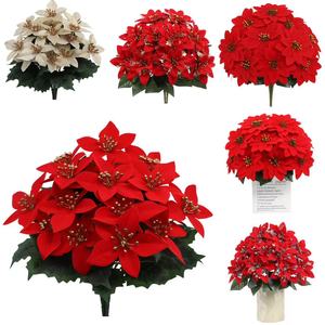跨境仿真花圣诞一品红假花家居装饰摆件节日场景布置仿真绿植批发