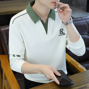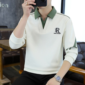 高级感V领卫衣男春秋季衬衫领百搭套头打底衫男士假两件上衣秋装