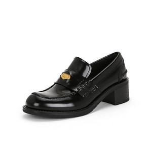 【葡萄妈同款】张元英同款~阿miu金币粗跟懒人乐福单鞋女小皮鞋