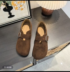 牛反绒浅口勃肯单鞋女2025年秋冬季新款法式复古平软底玛丽珍鞋子