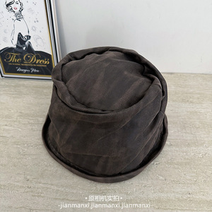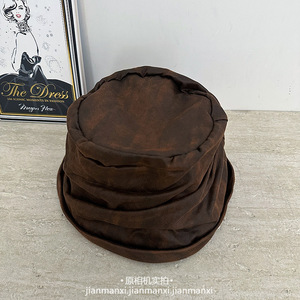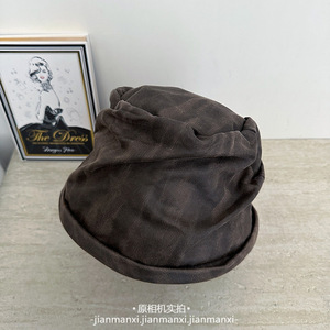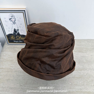 废土风秋冬新款褶皱水桶帽女款日系简约翻檐复古做旧百搭渔夫帽