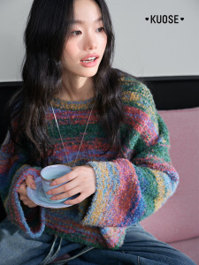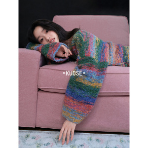 阔色彩色毛衣宽松圆领针织衫2025秋冬季多巴胺新款女气质长袖上衣