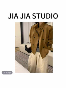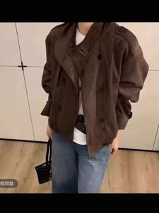 25年秋款外套上衣麂皮绒宽松休闲韩版学院风长袖立领外套夹克上衣