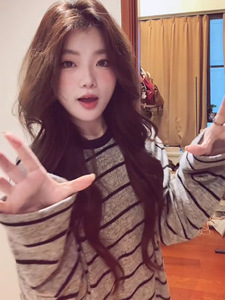 美式复古条纹拼色长袖t恤女早秋宽松设计休闲百搭松弛感气质上衣
