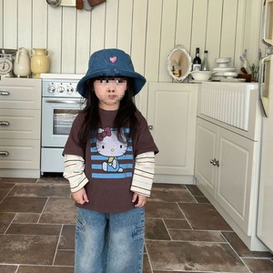 秋季假两件长袖女童卡通印花T恤中小童百搭休闲时尚上衣t0031A279