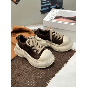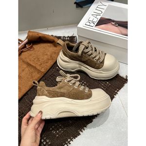 壹米恩2025年秋季新款百搭复古百搭圆头厚底轻便增高面包小白鞋女