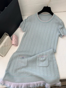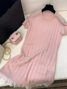 2025早秋新款南油cha时髦小香风气质设计感撞色圆领短袖连衣裙女