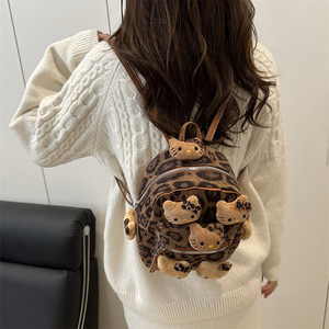 今年流行小众豹纹女式双肩包2025新款秋冬季百搭后背包迷你小书包