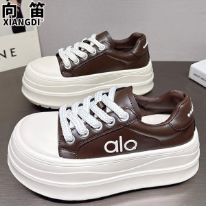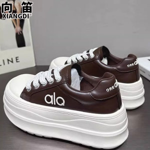 头层牛皮板鞋女款小个子增高厚底松糕鞋大头面包鞋休闲运动小白鞋