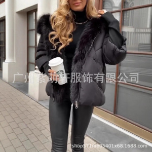 2025欧美跨境新款秋冬女士羽绒服大毛领狐狸毛短款连帽时尚外套女