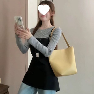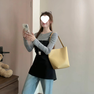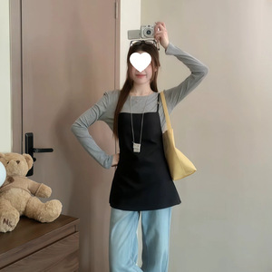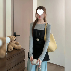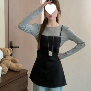 2025年圆领灰色长袖上衣叠穿背心套装女小众别致收腰外搭吊带裙子