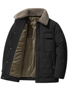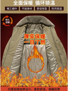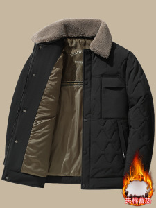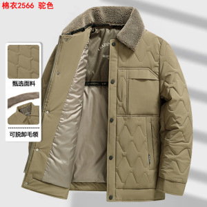 翻领纯色棉衣男冬季中年保暖厚款休闲百搭可脱卸毛领棉袄外套2566