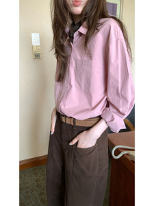 经典纯色基础长袖衬衫春秋女翻领2025新款百搭文艺衬衣上衣