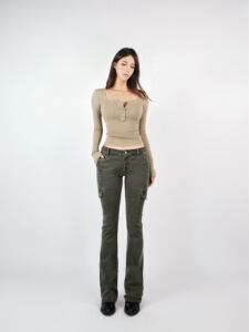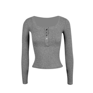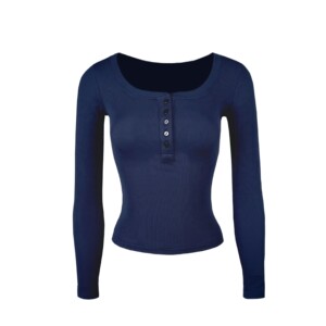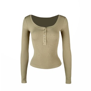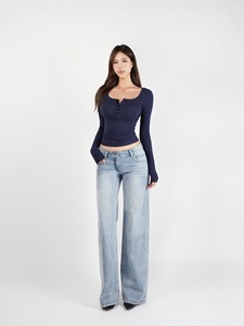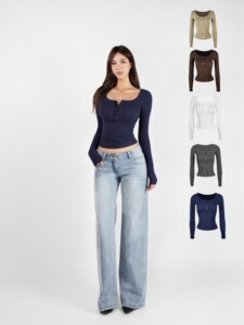 Jim Kennet基础U领弹力修身亨利长袖T恤