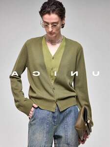 CleanFit风假两件_定纺柔感羊绒羊毛叠穿 针织衫开衫