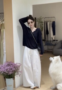 纯欲风薄款半开领长袖t恤女早秋穿搭宽松显瘦韩系慵懒松弛感上衣