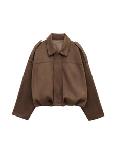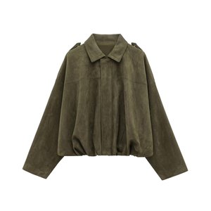 欧美 跨境女装2025早春新款 时尚绒面质感效果飞行员夹克外套上衣
