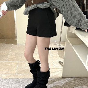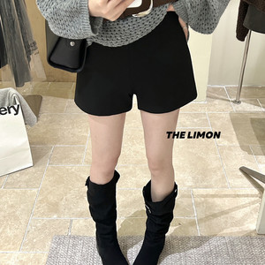 the limon柠檬绿茶2025秋季小个子修身显瘦高腰a字裤女休闲短裤