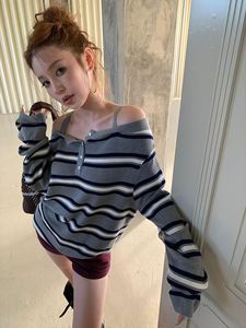 新款条纹吊带露肩一字领显瘦长袖上衣2025秋款百搭韩系时尚女T恤