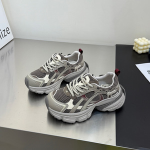 真皮网面厚底银色老爹鞋女2025秋季新款小个子增高轻便运动休闲鞋