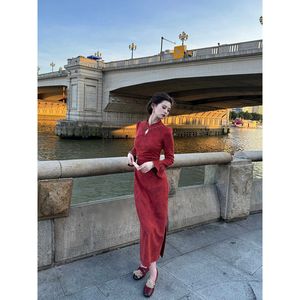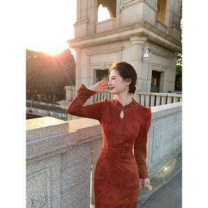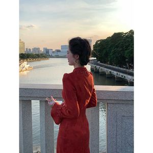 2025年【云裳誓约】新中式连衣裙子女秋新款红色复古结婚订婚裙子