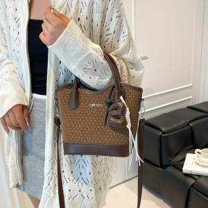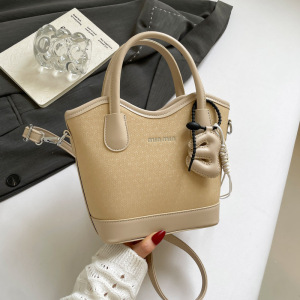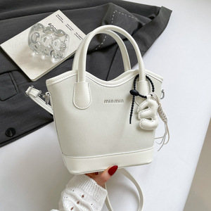 外贸高级感小众撞色手提水桶包女2025秋冬新款潮流百搭单肩斜挎包