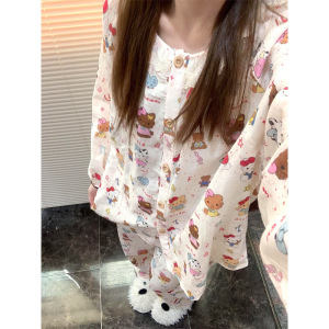 可爱少女黑皮kt猫睡衣女春秋季2025新款长袖长裤家居服套装可外穿