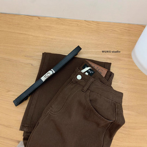 WGWE秋季韩版休闲宽松显瘦垂感高腰直筒阔腿牛仔裤W7326(配腰带)
