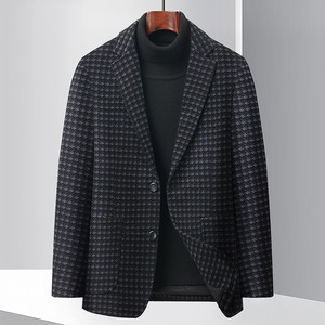 男式休闲西装2025春秋千鸟格轻奢商务单西中青年单排扣西服外套潮