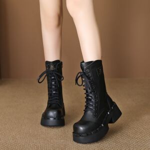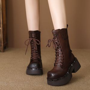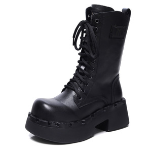 头层牛皮复古马丁靴女2025秋冬新款防滑耐磨真皮增高短靴中筒靴