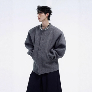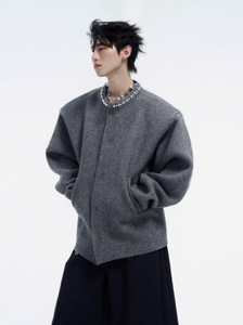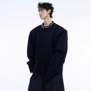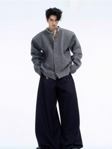 高级感小众珍珠点缀短款开衫毛衣男秋冬季宽松痞帅慵懒针织衫外套