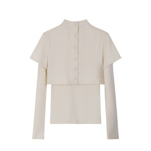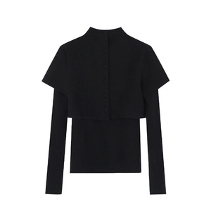 爱西里2025秋氛围感短袖小高领针织外搭+修身长袖针织衫套装15525