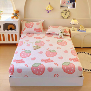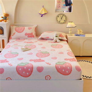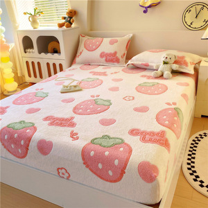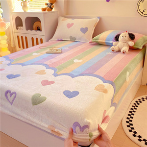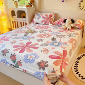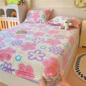 小清新卡通雪花绒印花床笠牛奶绒床笠床垫保护套床罩学生宿舍